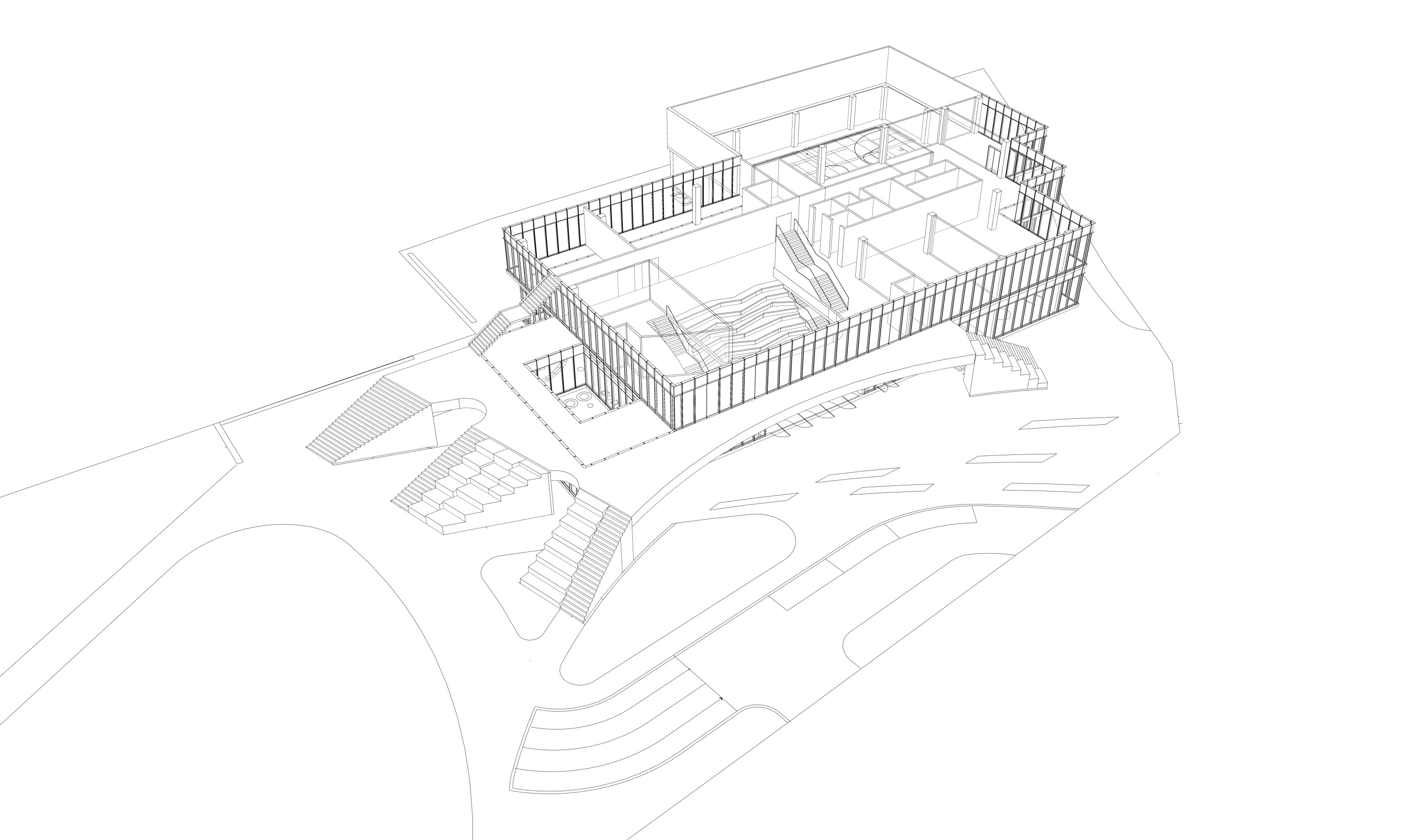 Die Beziehung zur Paulskirche wurde vorrangig behandelt. Das neue Rastersystem, das leicht zum bestehenden Raster der Paulskirche und des Platzes geneigt ist, schafft eine Lücke zwischen der Kirche und HDD. Dieser wird zum Haupteingang des Gebäudes, zu einem Raum, der Vergangenheit und Zukunft miteinander verbindet. Die Treppe zur Terrasse neben dem Haupteingang erinnert an den historischen Platz vor und nach dem Krieg, und die Mauer der Treppe bildet eine klare Grenze zwischen dem Platz und HDD. Auf diese Weise wird die Beziehung zwischen der Kirche, HDD und dem Platz ausgeglichen und in die Zukunft als ein historischer Ort weitergegeben. Das Konzept des Gebäudes basiert auf dem Raum einer Kirche, mit der Absicht, Vergangenheit und Gegenwart nebeneinander bestehen zu lassen. Die zentrale Treppe, die vom Kirchturm inspiriert ist, nutzt digitale Wände zur Information der Besucher. Die Funktion des Platzes wurde beibehalten und der fehlende öffentliche Raum wurde durch Terrassen ersetzt. Diese Terrassen erweitern nicht nur den Innenraum, sondern verbinden den Stadtraum auch visuell. Das harmonische Ensemble von Kirchen, Plätzen und Neubauten im Stadtraum entspricht den Grundsätzen der Demokratie.