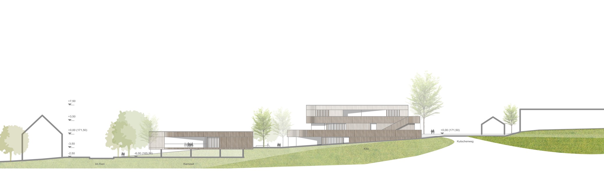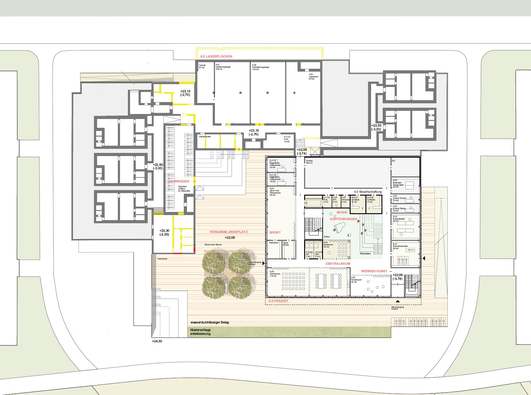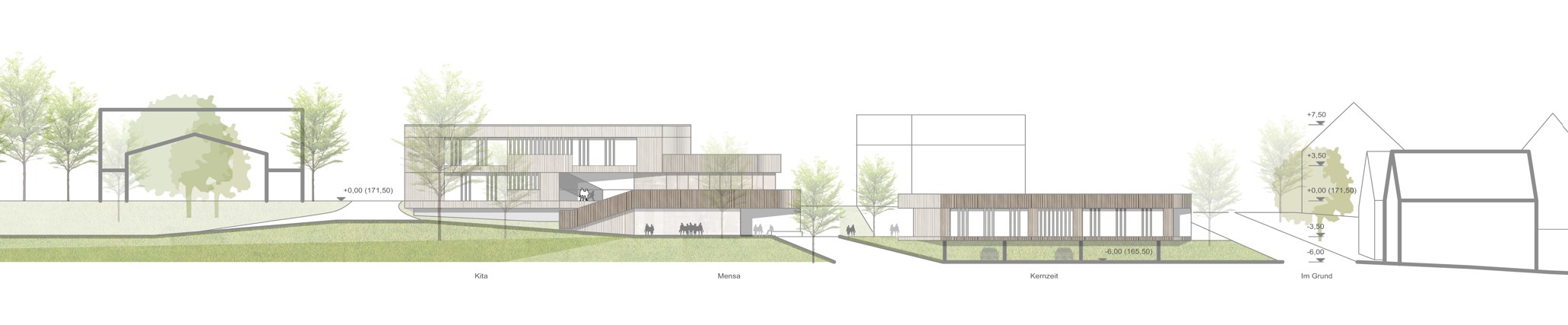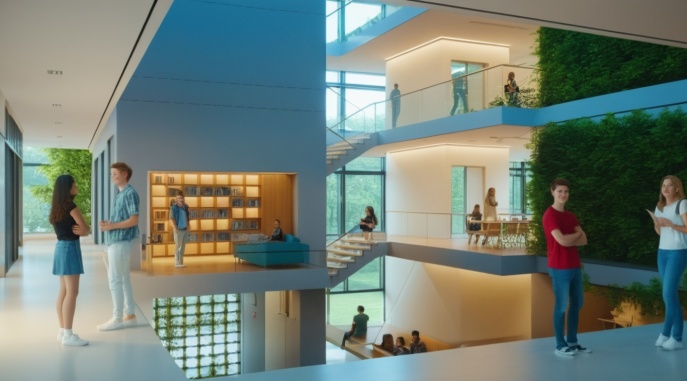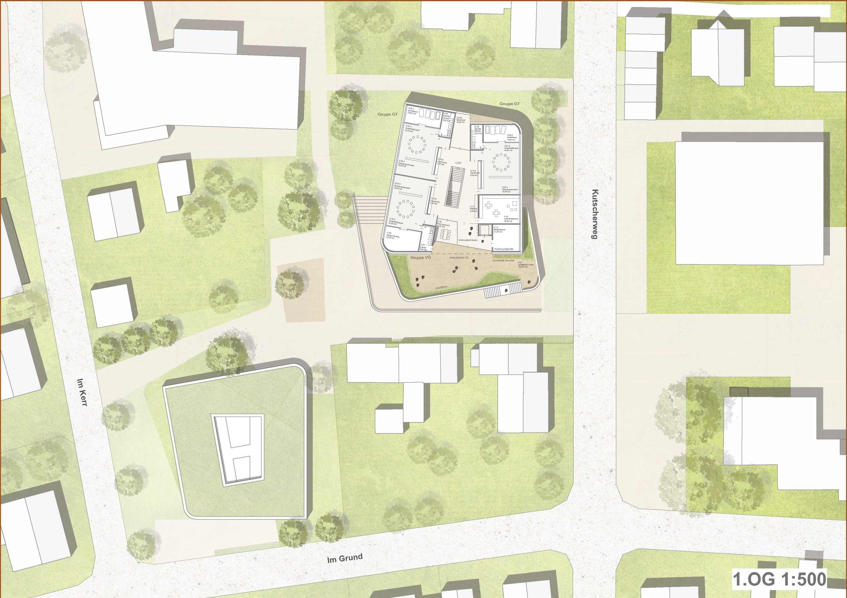 Die Beziehung zur Paulskirche wurde vorrangig behandelt. Das neue Rastersystem, das leicht zum bestehenden Raster der Paulskirche und des Platzes geneigt ist, schafft eine Lücke zwischen der Kirche und HDD. Dieser wird zum Haupteingang des Gebäudes, zu einem Raum, der Vergangenheit und Zukunft miteinander verbindet. Die Treppe zur Terrasse neben dem Haupteingang erinnert an den historischen Platz vor und nach dem Krieg, und die Mauer der Treppe bildet eine klare Grenze zwischen dem Platz und HDD. Auf diese Weise wird die Beziehung zwischen der Kirche, HDD und dem Platz ausgeglichen und in die Zukunft als ein historischer Ort weitergegeben. Das Konzept des Gebäudes basiert auf dem Raum einer Kirche, mit der Absicht, Vergangenheit und Gegenwart nebeneinander bestehen zu lassen. Die zentrale Treppe, die vom Kirchturm inspiriert ist, nutzt digitale Wände zur Information der Besucher. Die Funktion des Platzes wurde beibehalten und der fehlende öffentliche Raum wurde durch Terrassen ersetzt. Diese Terrassen erweitern nicht nur den Innenraum, sondern verbinden den Stadtraum auch visuell. Das harmonische Ensemble von Kirchen, Plätzen und Neubauten im Stadtraum entspricht den Grundsätzen der Demokratie.